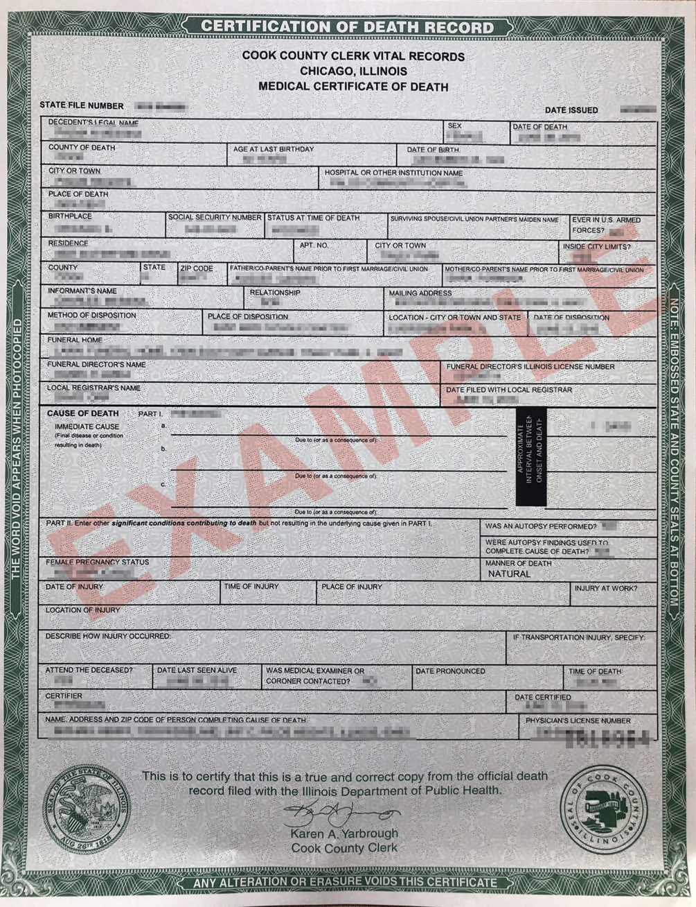 This is a PDF template for an Italian translation of a State of Illinois death certificate (circa 2010s).