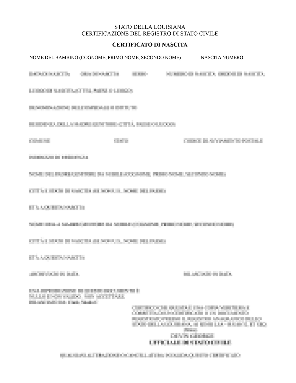 Louisiana State - Birth Certificate Template (Italian)