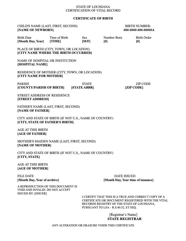 Louisiana State - Birth Certificate Template (Italian)